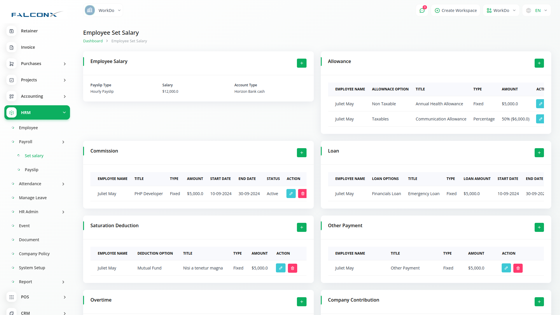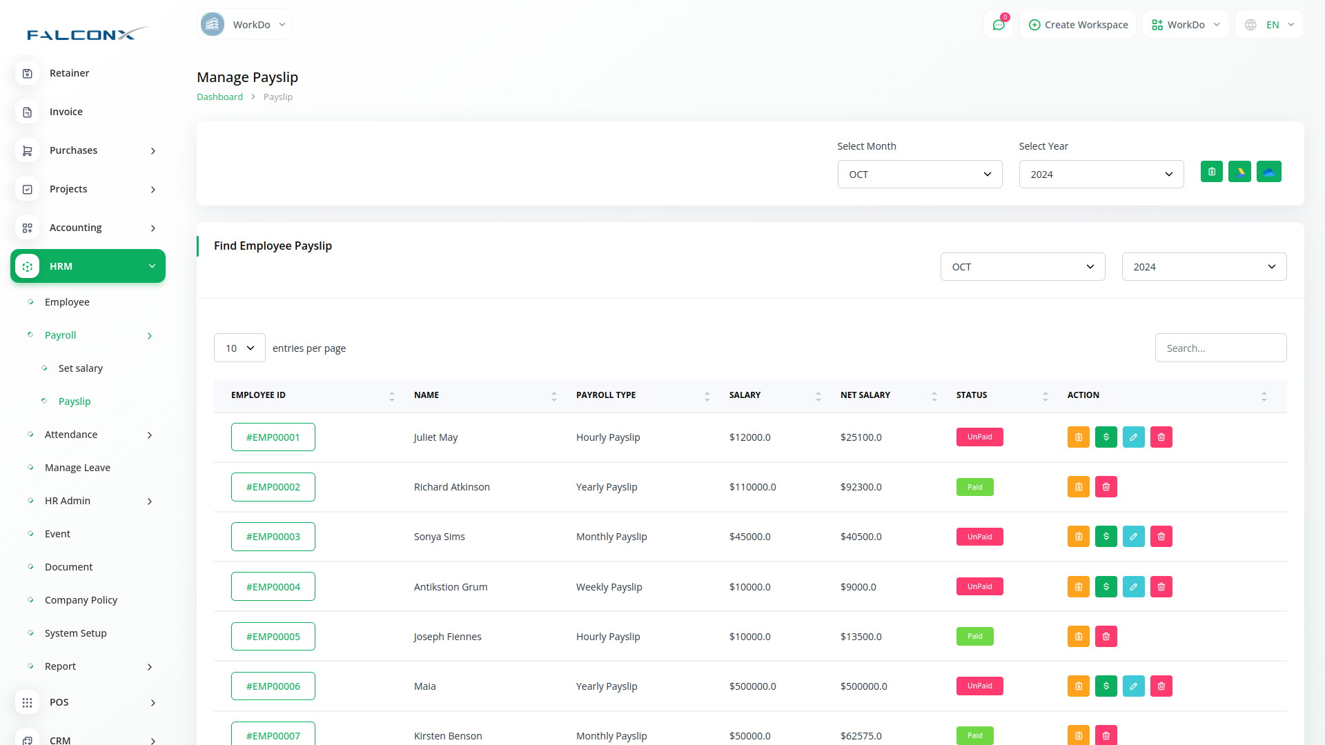 Asan kliklər vasitəsilə aylıq ödəniş sənədləri yarada və toplu ödənişlər edə bilərsiniz. Siz həmçinin asan bir CTA ilə maaş kağızının statusunu dəyişə bilərsiniz. İşçi əmək haqqı komponentlərinin bölgüsünə baxa bilər.